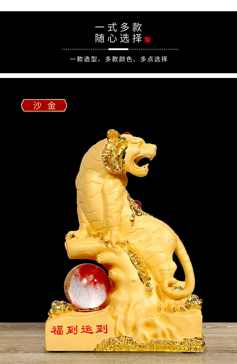 雅信新款生肖虎摆件招财老虎客厅办公室风水球金色木纹色厂家批发