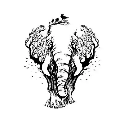 动物树枝大象黑白png素材
