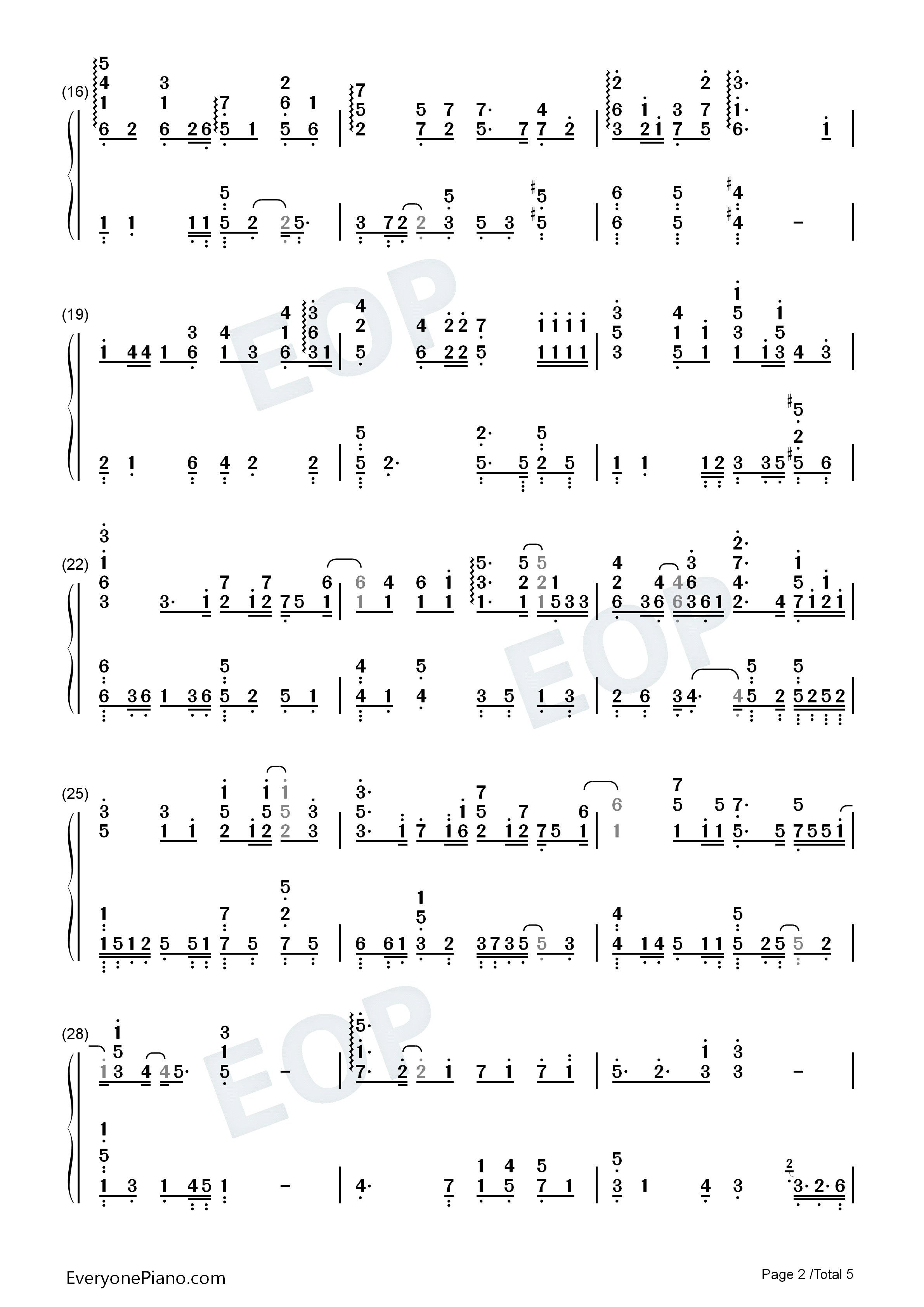 后来遇见他-胡66双手简谱预览5-钢琴谱文件(五线谱,双手简谱,数字谱