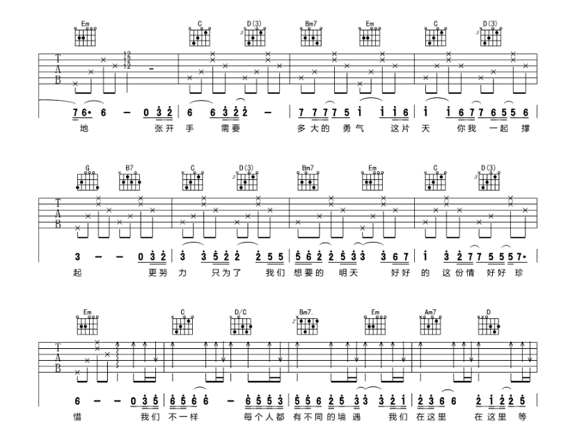 我们不一样吉他谱大壮吉他图片谱3张