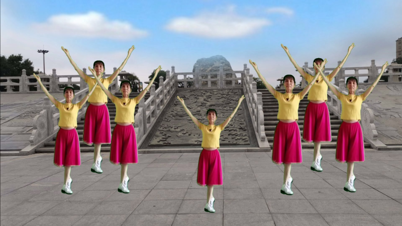 矫健活泼的女同胞面对镜头摆出优美的动作,谁能相信她们都是奔七之人