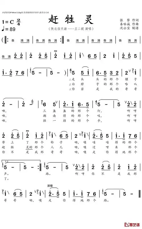 赶牲灵简谱(歌词)-王二妮演唱-沈公宝 曲谱1