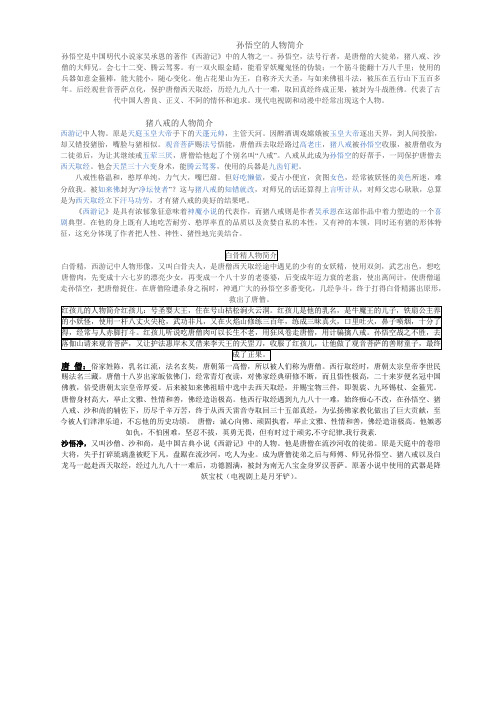 孙悟空的人物简介 孙悟空是中国明代小说家吴承恩的著作《西游记》中