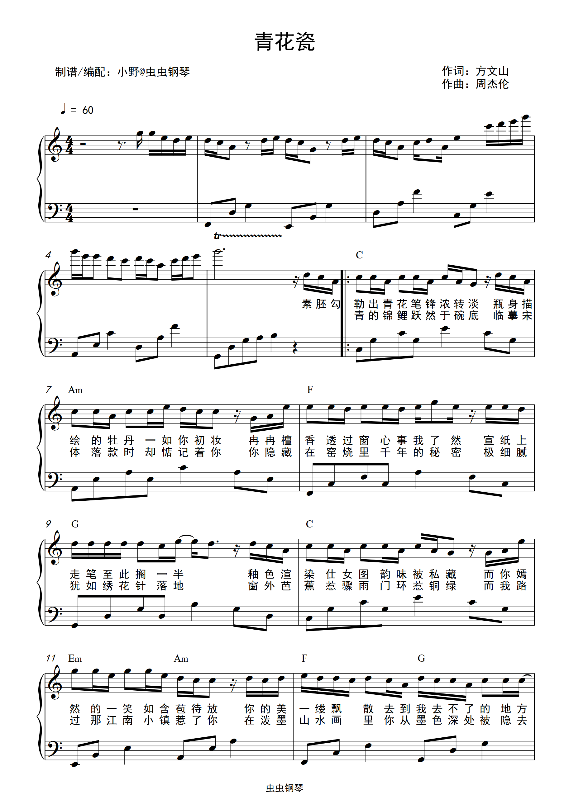 青花瓷 c调简易版钢琴谱-虫虫钢琴