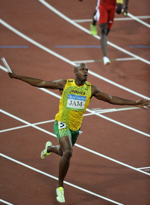 图文男子4x100米接力牙买加队夺金鲍威尔庆祝