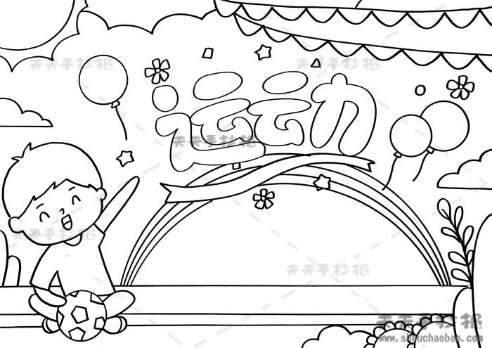 运动会主题儿童手绘风手抄报浅线稿模板