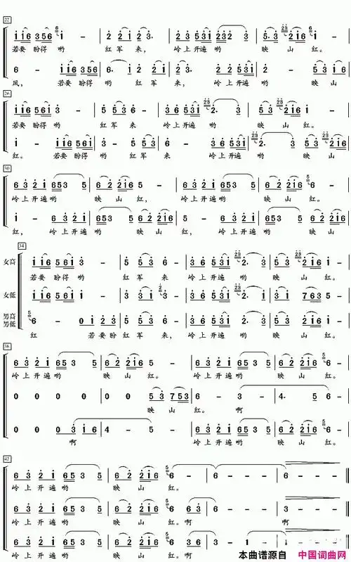 映山红(混声合唱) 杨建中编合唱 歌谱简谱网