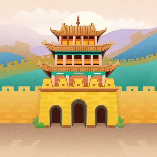 卡通古城风景城楼景观古城建筑自然城市风光中国风国潮矢量插画