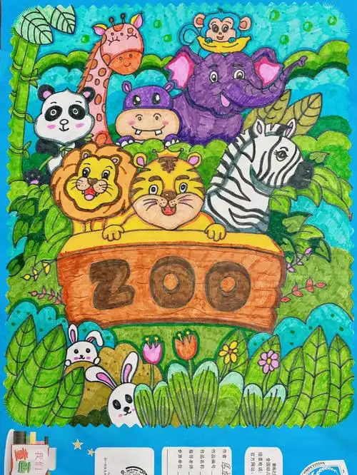 彩色动物园儿童绘画