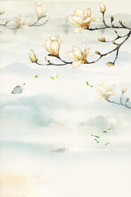 h5古代简单景观 , 木兰, 淡雅, 工笔划 背景图