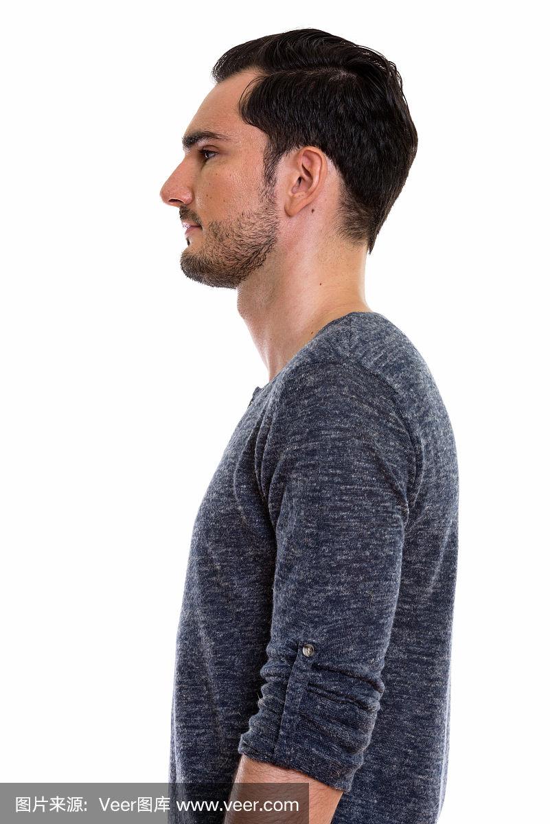 男人抠图白色背景t恤休闲装摄影侧面像成年的男性