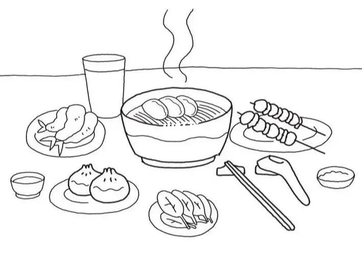 早中晚三餐食物简笔画