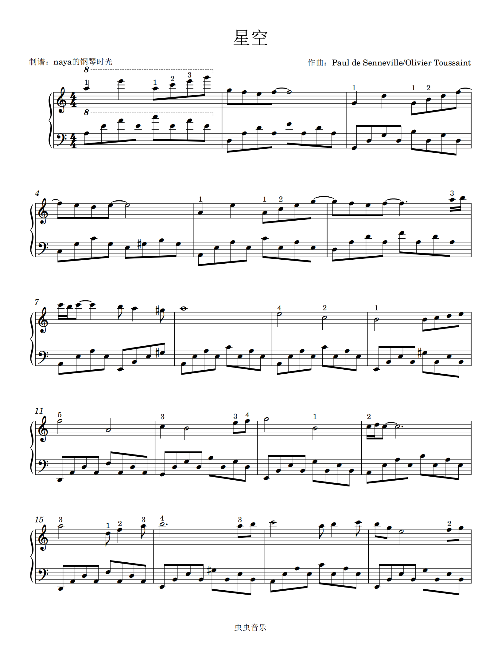 星空-理查德克莱德曼-c调简单版本钢琴谱-虫虫钢琴