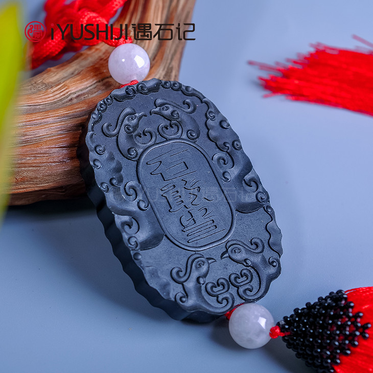 宏图好运 泰山墨玉护佑四方吊坠项坠挂件 增智慧旺事业助气场保平安