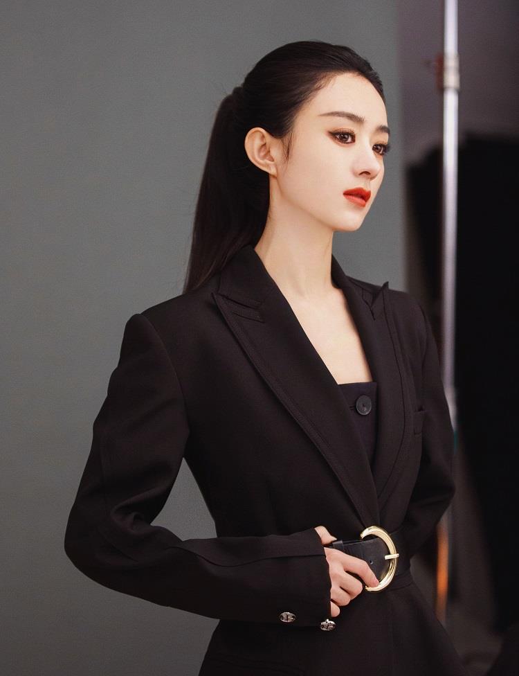 赵丽颖最新代言时尚大片,高马尾配黑西装,霸道女总裁范太强了!