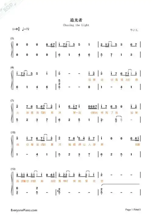 aniface夜萤火虫和你钢琴谱