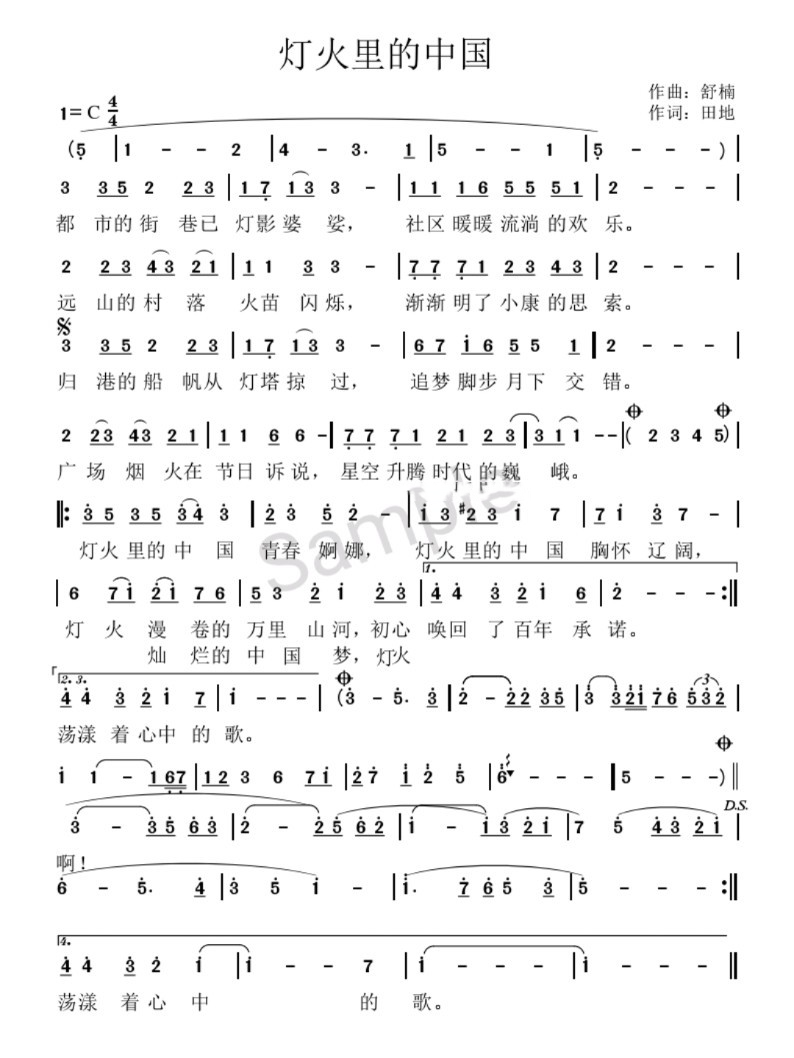 灯火里的中国(央视2021年春晚歌曲)简谱_流行简谱_zzmao简谱网