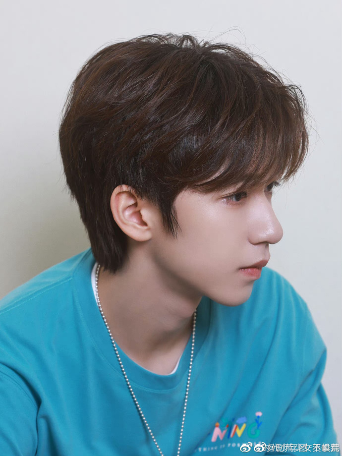贺峻霖正脸vs侧脸#贺峻霖今日营业照,蓝色短袖清新帅气,比耶好可 !