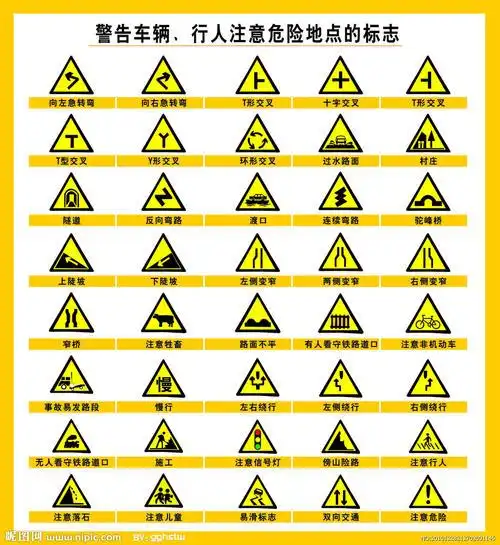 黄色三角形交通安全标志大全