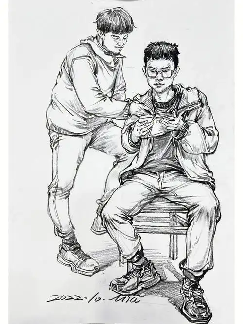 优秀速写双人组合临摹图片初学者必收藏的速写作品