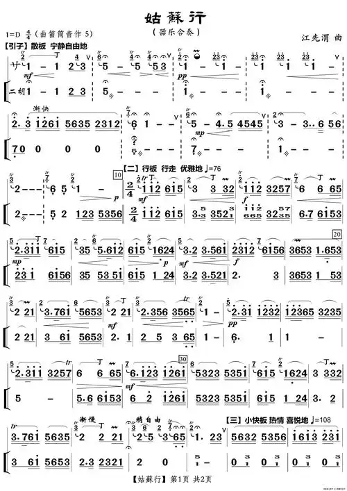 姑苏行(笛子曲)_简谱_搜谱网
