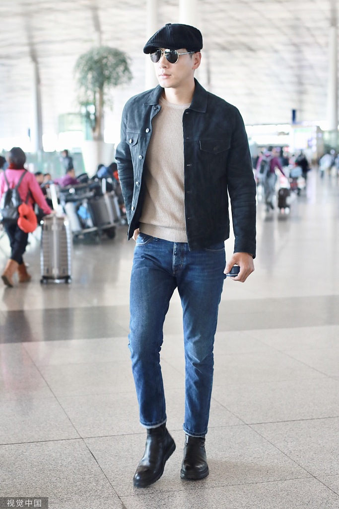 组图:张亮穿夹克牛仔裤简约范儿长腿瞩目 机场走出t台既视感