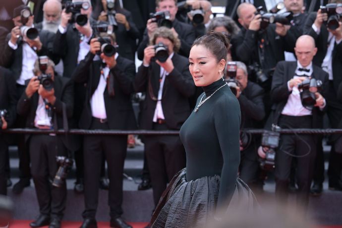 巩俐飘逸纱裙亮相戛纳电影节 裸妆出镜气场十足