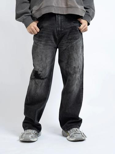 牛仔裤黑色秋冬复古巴家水洗宽松破洞dokie重磅设计感美式