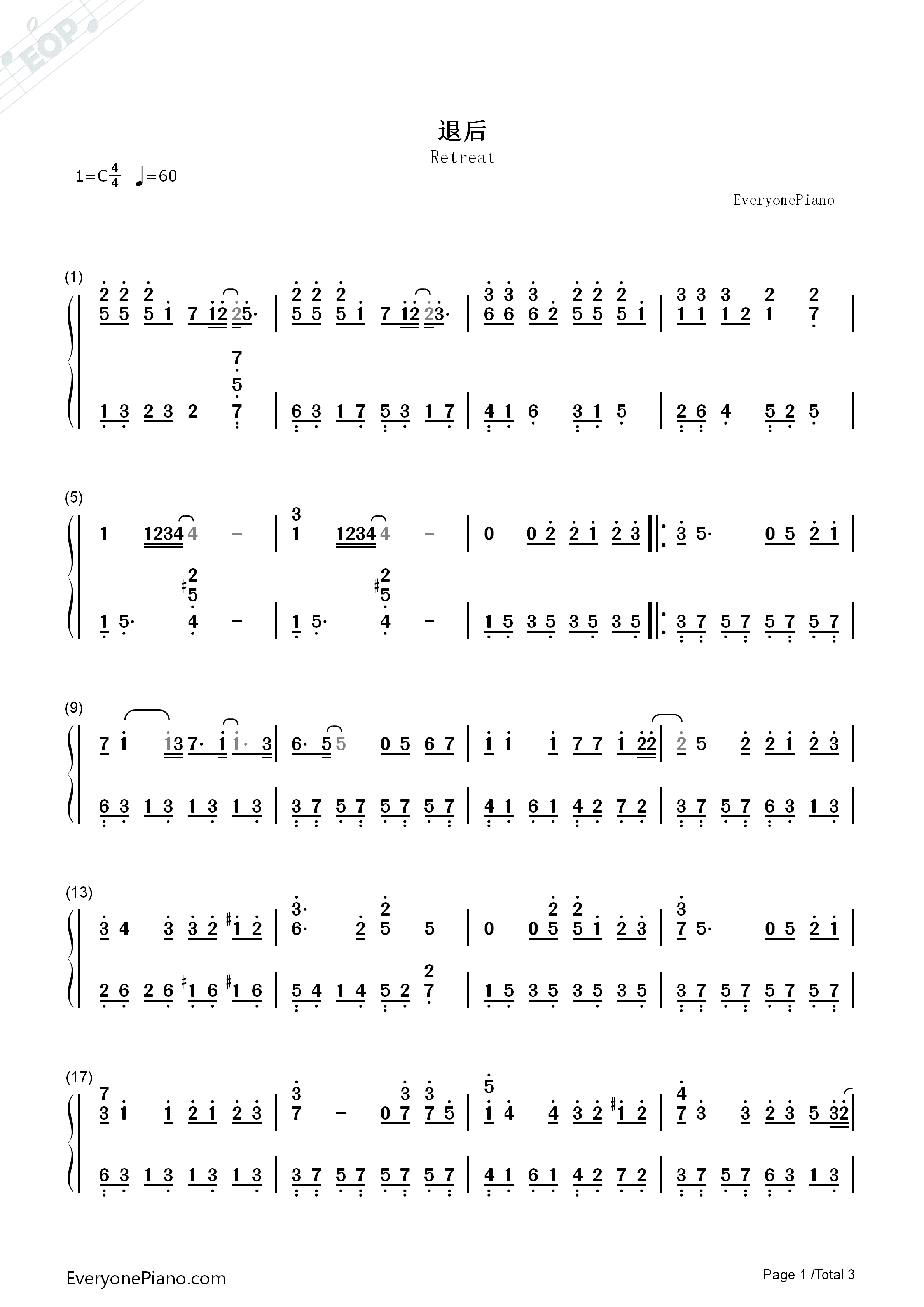 退后-周杰伦双手简谱预览1-钢琴谱文件(五线谱,双手简谱,数字谱,midi,
