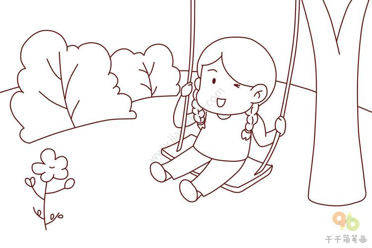 小女孩草地玩的简笔画