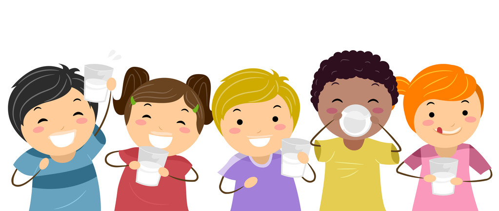 女孩喝牛奶卡通快乐的孩子喝牛