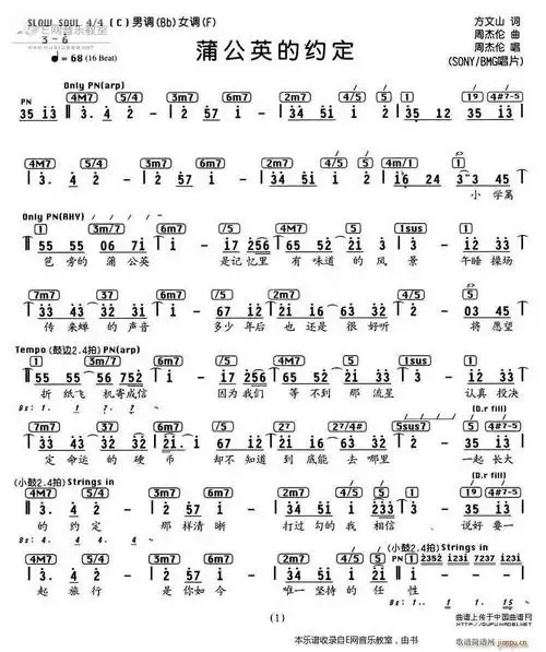 蒲公英的约定周杰伦简易版