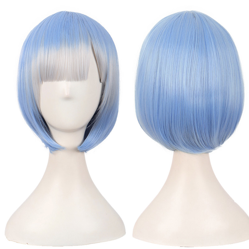 潼漫 cos假发女短发直发挑染混蓝色渐变灰色bobo头30cm高温丝假毛