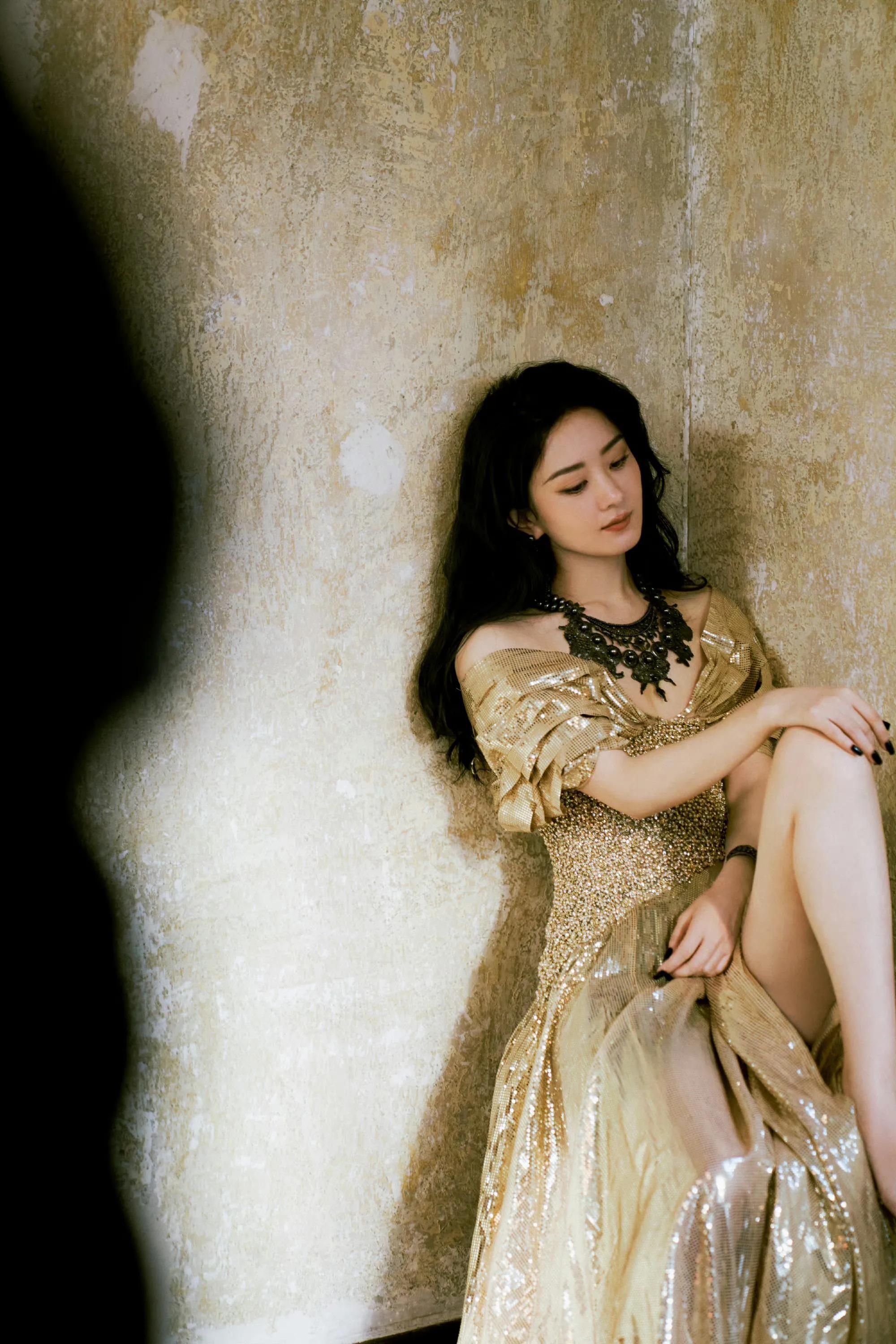 赵丽颖# 身穿金色刺绣透视裙,清纯妩媚的眼神,肤白貌美的容颜,白皙