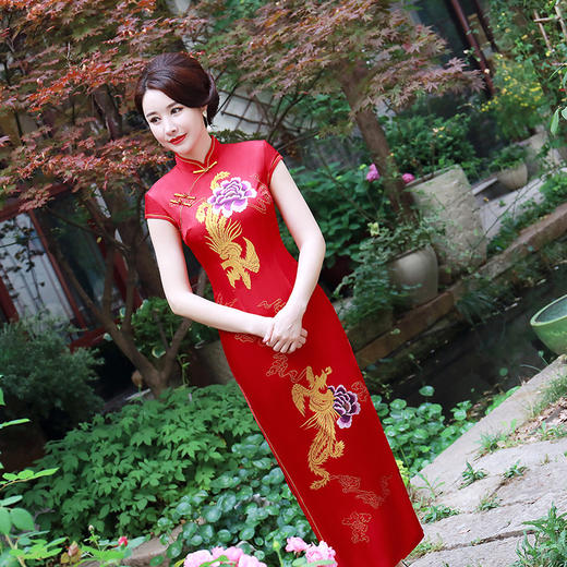 高端长款修身改良红色凤凰旗袍(货号 xyg1731)