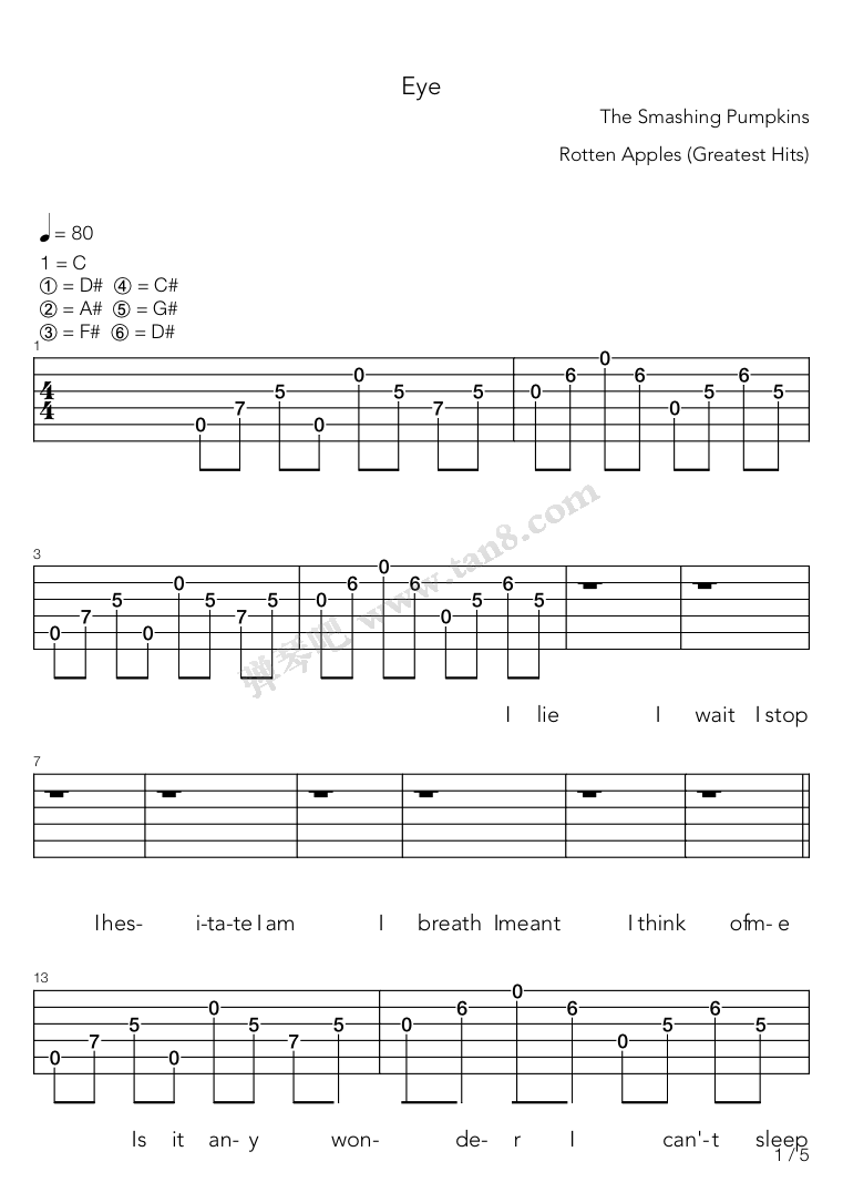 eye waterc调gtp六线pdf谱吉他谱-虫虫吉他谱免费下载