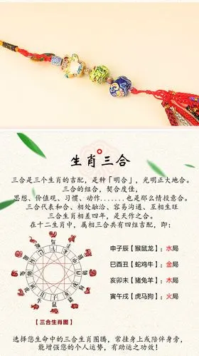 其中在民间最为流行的就是"生肖三合"的说法,指三个生肖相互的吉配