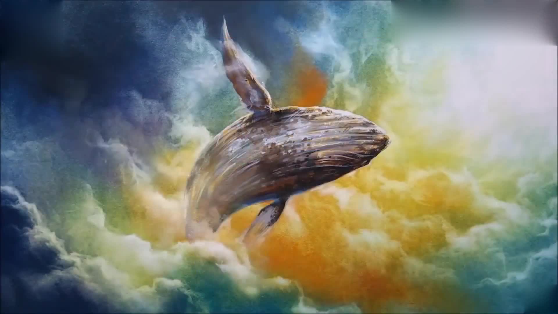 超炫酷的星空水彩画,男孩与鲸鱼的唯美童话