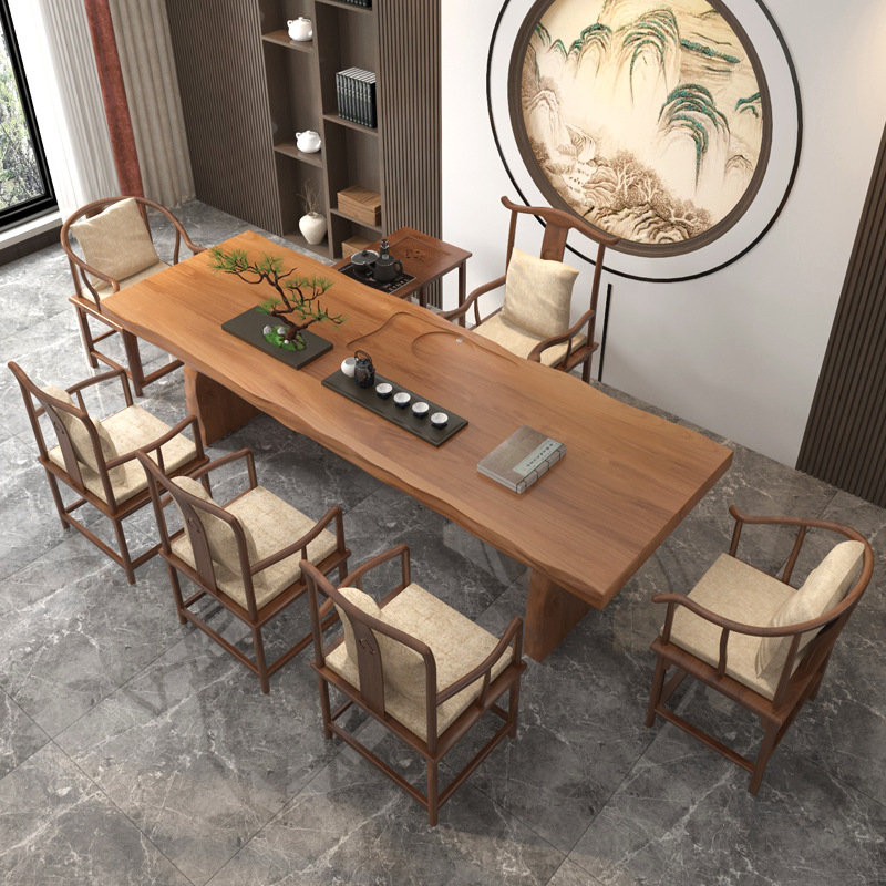 高档实木大板原木茶桌茶几办公桌泡茶桌椅组合新中式茶台家用长条