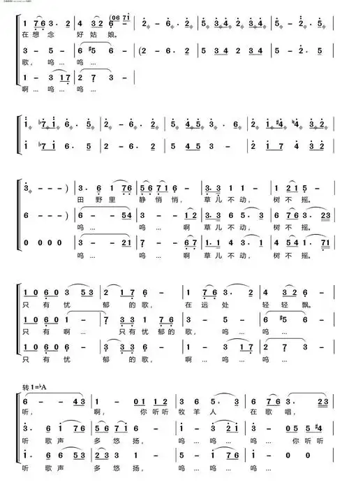 田野静悄悄 梦之旅三声部重唱 梦之旅组合 歌谱 简谱