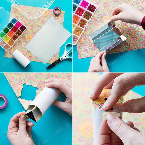 怎麼用卫生纸纸筒做万花筒教程 - 废物利用手工diy小制作 - 51费宝网