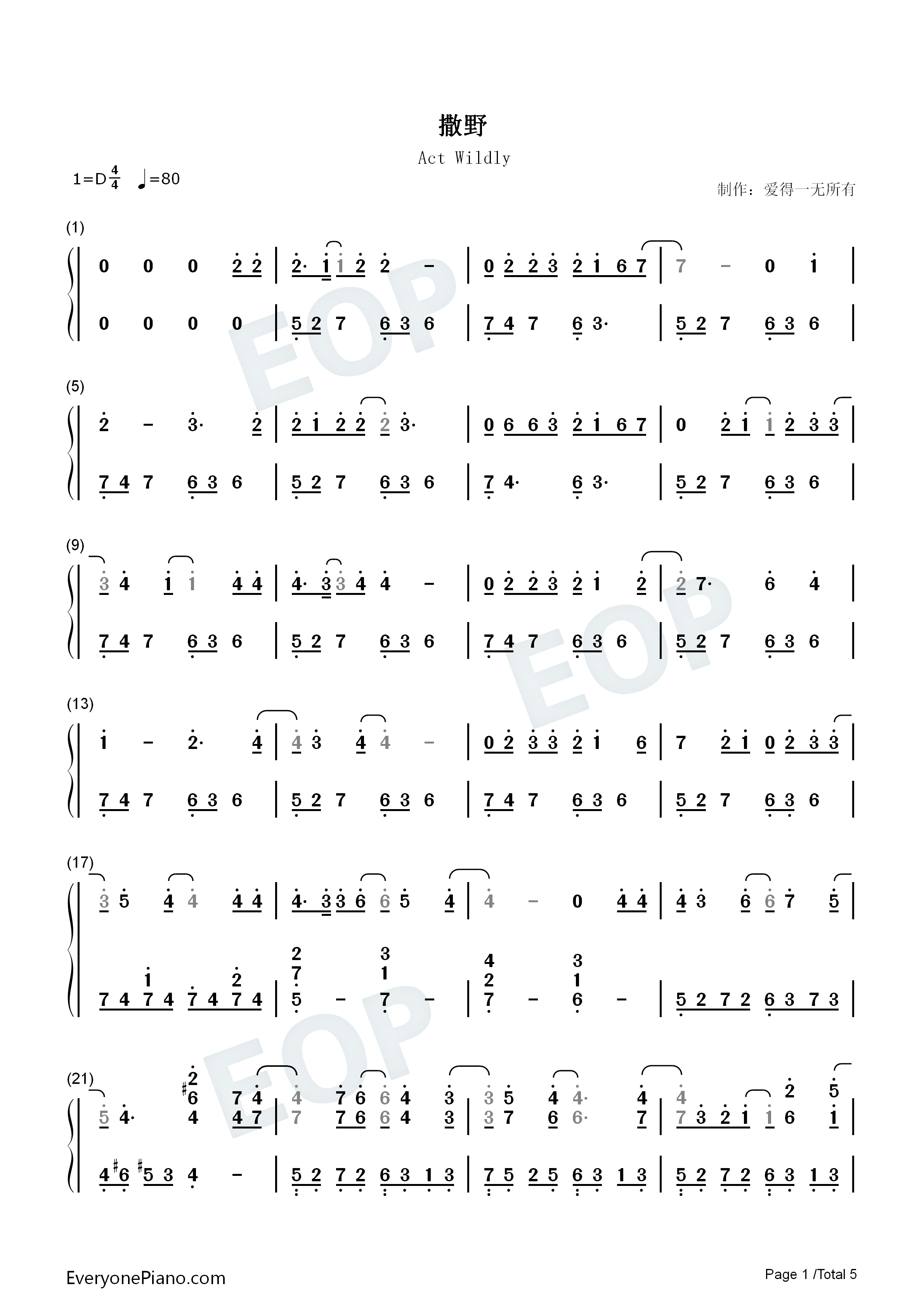 《撒野(简谱)》钢琴谱由求谱网制作,并提供《撒野(简谱)》钢琴曲在线