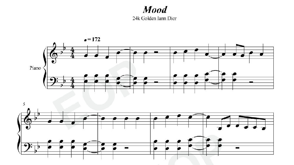 24kgoldn,iann dior《mood》钢琴谱第1张