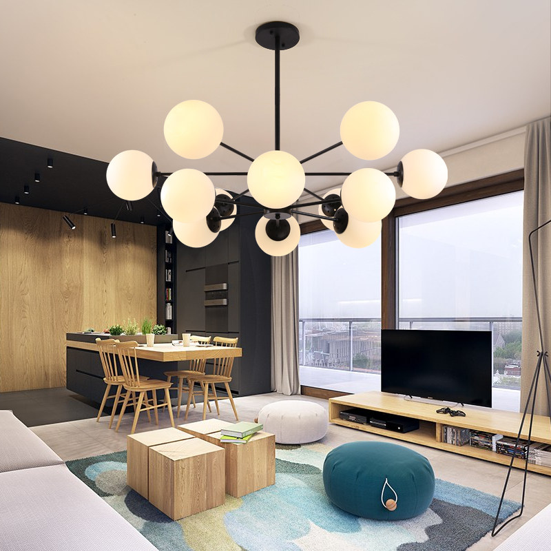北欧风客厅灯led后现代简约家用装饰餐厅卧室设极简玻璃魔豆吊灯
