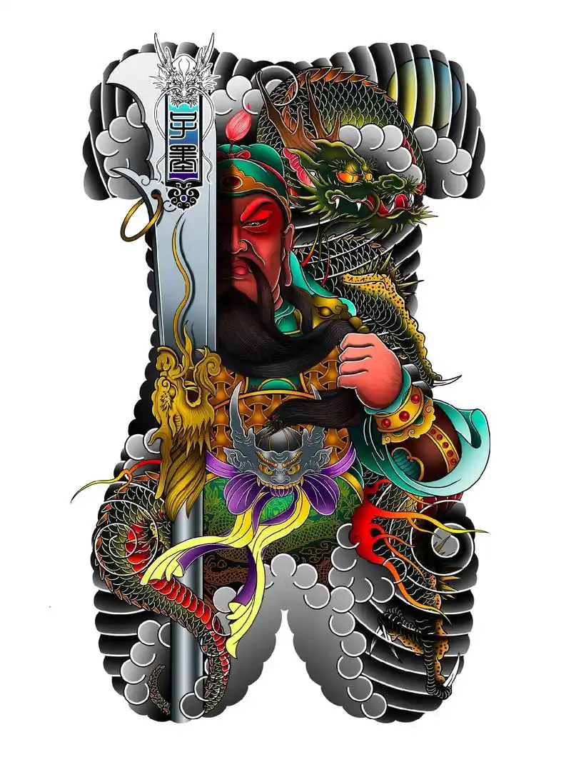满背关羽_纹身图案手稿图片_余倩倩的纹身作品集