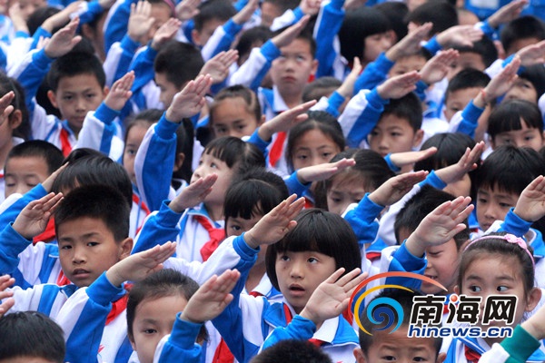 升国旗仪式上,学生们敬礼致敬(南海网记者 陈望摄)