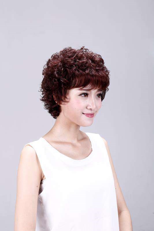 真发假发女短发妈妈短卷发发型真人发丝自然中老年全头套式假头发