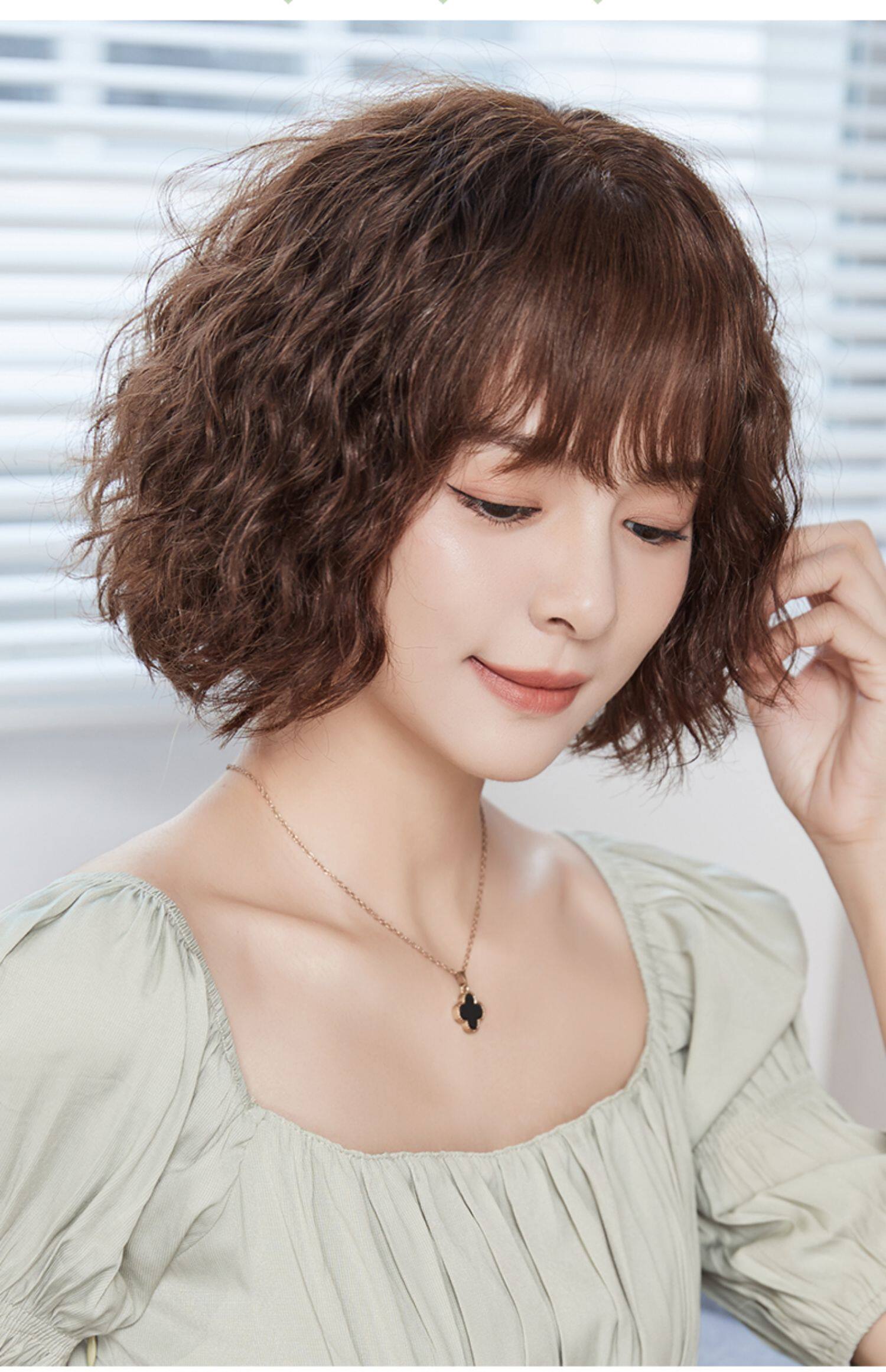 假发女短发短卷发羊毛卷假发套女网红蓬松逼真修脸真人发丝全头套
