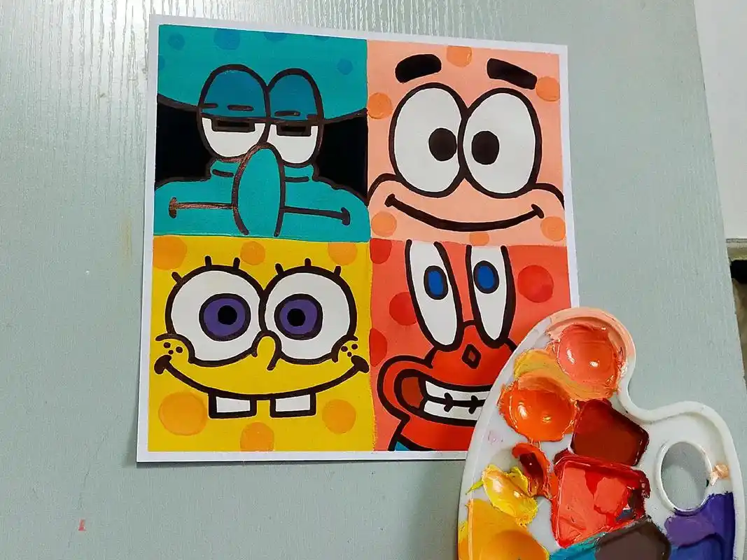 海绵宝宝四宫格画.#海绵宝宝#水粉#临摹 - 抖音
