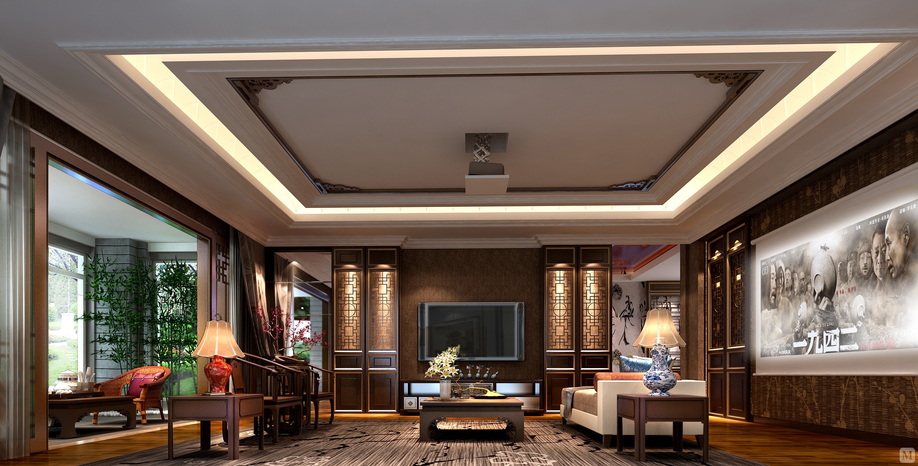 当前位置:>首页>装修案例>电网小区300㎡新中式风装修效果图>客厅空间